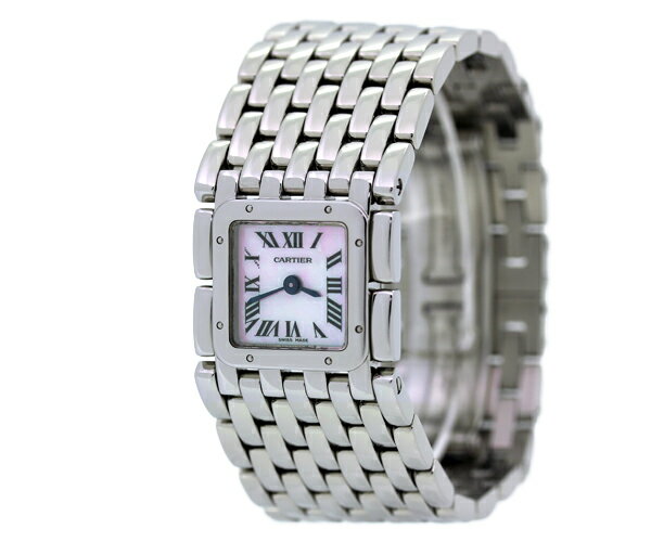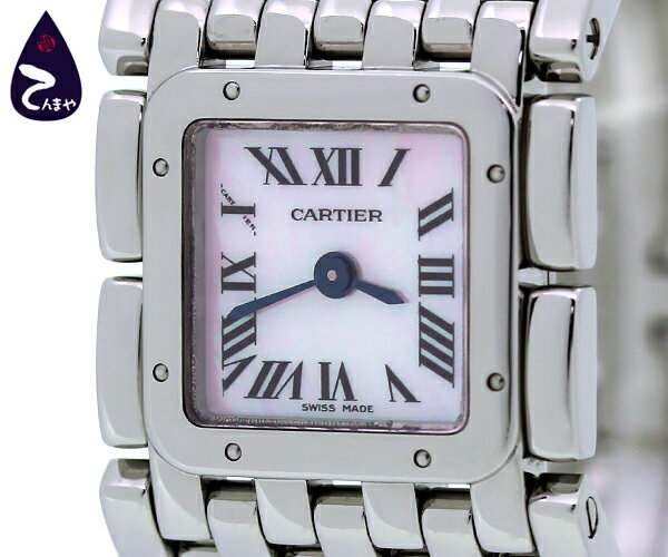 カルティエ Cartier パンテール ミニリュバン K18WG ダイヤベゼル ホワイトシェル文字盤 ローマンインデックス レディース クオーツ 時計 【中古】